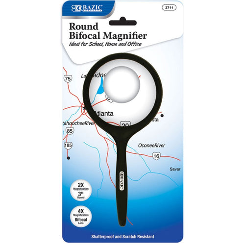 BAZIC 3" Round 2x Handheld Magnifier & 4x Bifocal Inset